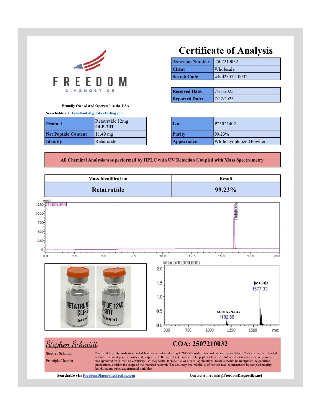 Store lyophilized Retatrutide at -20°C in a dark, dry location.